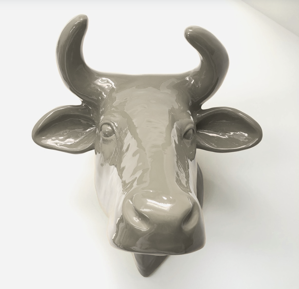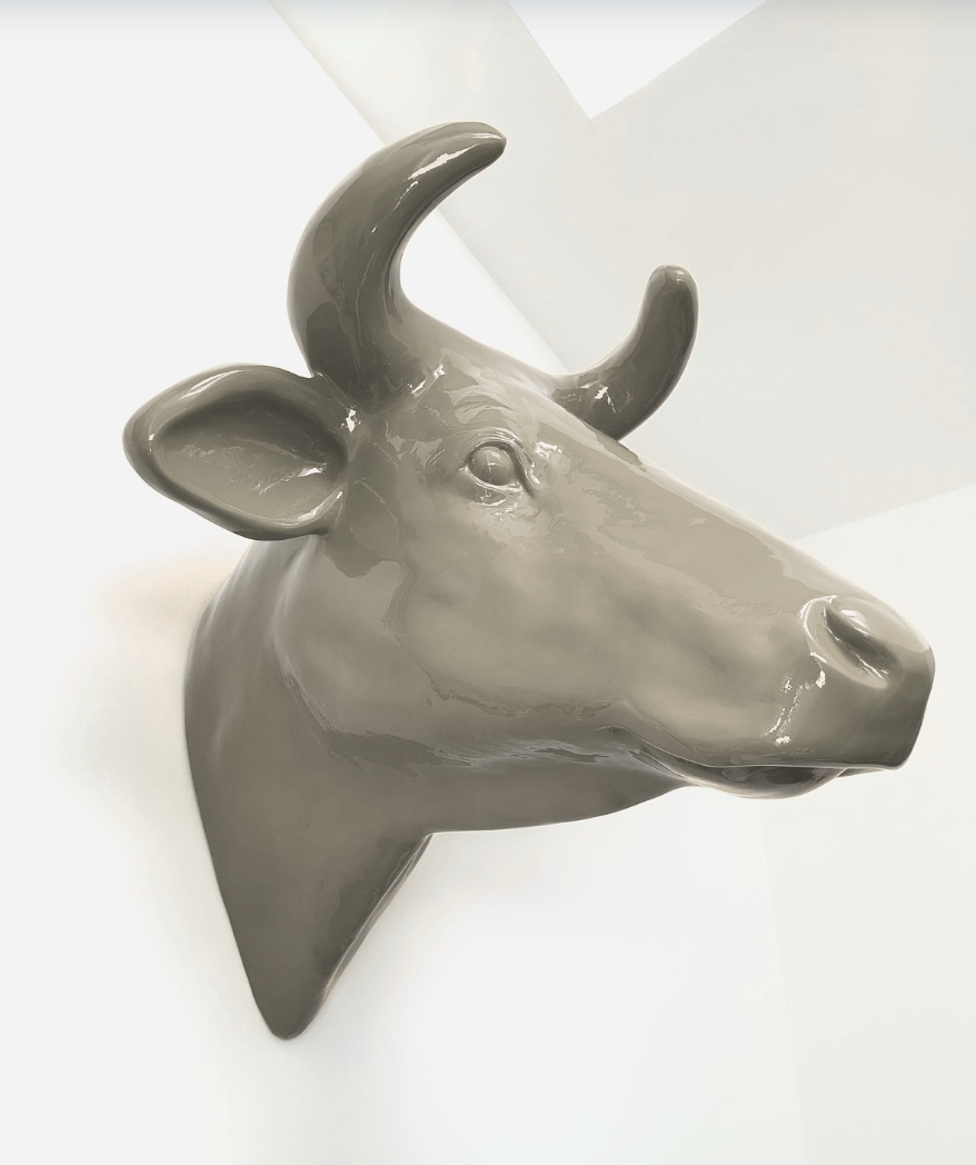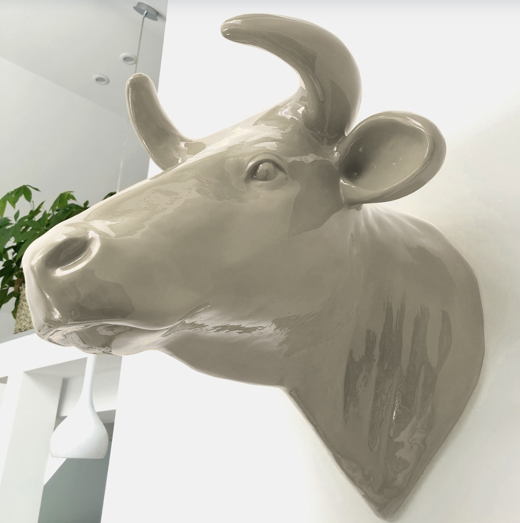 Abstrakte Lebensgroße Kuh-Kopf – Deko Hochglanz – moderner Beigeton Kaschmir