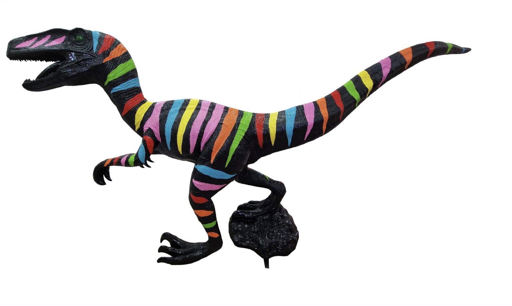 Dinosaurier Velociraptor 282 cm Lange ist aus alls andrere Figuren Glasfaserkunstharz gefertigt. Hochglanz lackiert und mit UV-beständigem Klarlack versiegelt.