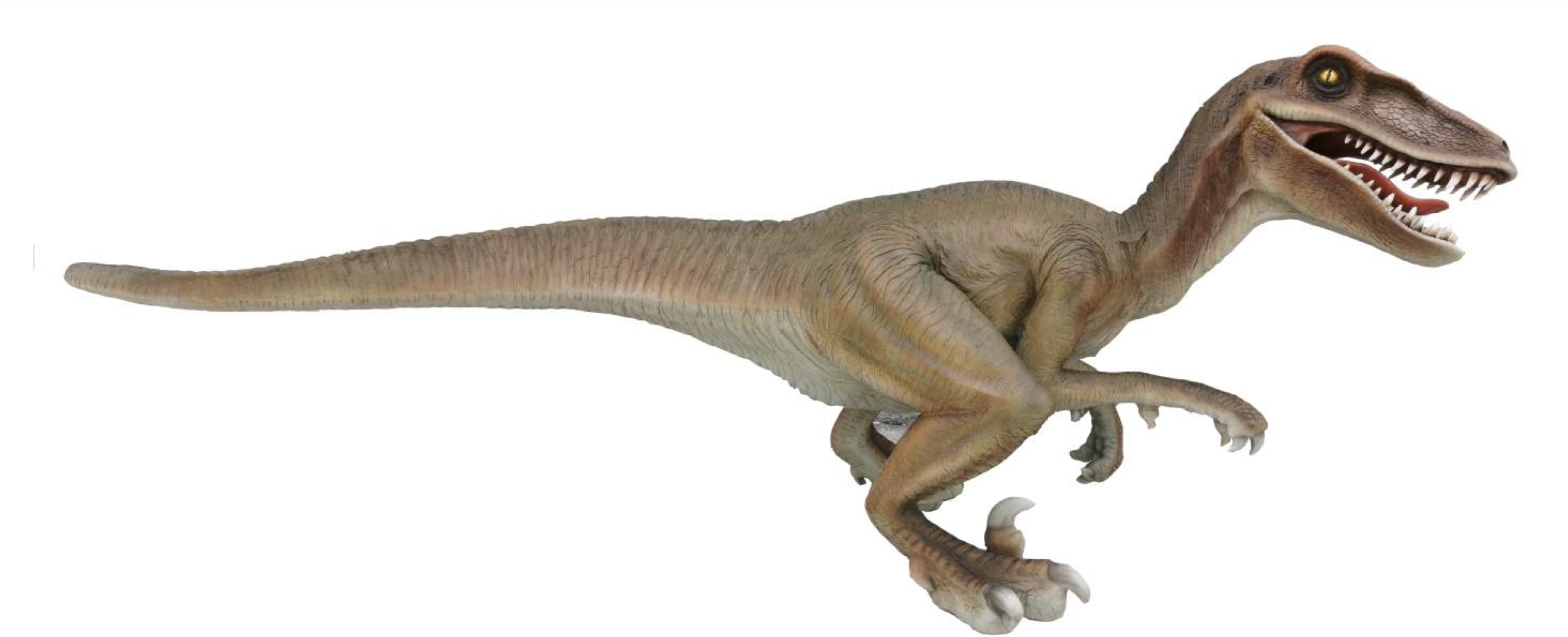 Dinosaurier Velociraptor 355 cm Lange ist aus alls andrere Figuren Glasfaserkunstharz gefertigt. Natur lackiert und mit UV-beständigem Klarlack versiegelt.