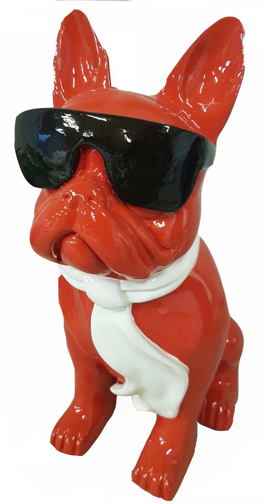 Ein handgearbeitetes Hochglanz Französische Bulldogge mit Brille für Ihre Haus und Garten oder Messen und Ausstellungen.