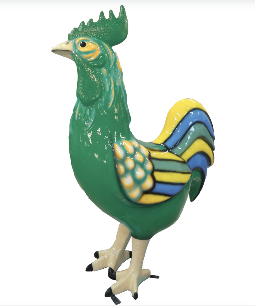 Ein handgearbeitetes Hochglanz bunter Hahn für Ihre Haus und Garten oder Messen und Ausstellungen.