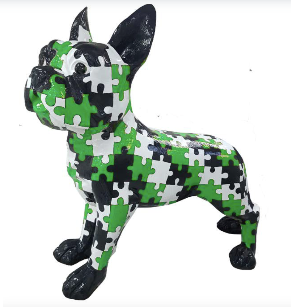 Ein handgearbeitetes Hochglanz Französische Bulldogge mit Brille für Ihre Haus und Garten oder Messen und Ausstellungen.